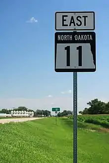 North Dakota Highway 11 (ND 11) is a 182.459-mile-long (293.639 km) east–west state highway in the U.S. state of North Dakota. ND 11's western terminus is at U.S. Route 83 (US 83) west of Hague, and the eastern terminus is a continuation as Minnesota State Highway 55 (MN 55) at the Minnesota/ North Dakota border.[1]