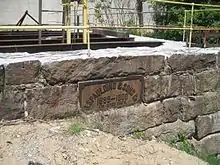 Once his Milton New Hampshire Leatherboard Mill was running full, Jonas Spaulding explored for another site on which to expand the business. Ira Jones, a hydraulic engineer native to the area,[2] directed Jonas to the old Cottles Woolen Mill site in North Rochester.[3] At the time of Jonas' investigation the rippling water of the Salmon Falls River at the Cottles mill site was a feature on a pleasant day's buggy ride that followed a loop. Ruth Howland[4] reported that the buggy ride would begin in Rochester with a drive up the Milton Road to North Rochester then a cross over the Salmon Falls River was made into Maine. The rippling water at the Cottles Mill site would be viewed on this crossing. The loop would then continue on the Maine side of the Salmon Falls River to East Rochester, there crossing the river to return to Rochester. Jonas decided this would be a good site and started construction on a second leatherboard mill on the Salmon Falls River. The first phase of the project was the construction of a canal with masonry walls. The canal ran 100 feet (30 m) and was 20 feet (6.1 m) wide. The masonry walls were 6 to 10 feet (1.8 to 3.0 m) thick. The next phase of construction was building a solid masonry mass 20 feet (6.1 m) square where the mill wheel was placed (see photo).