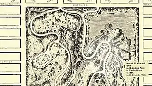 The Pool and Loch in the North Woods were proposed by Central Park commissioner Robert J. Dillon, who included it as one of seventeen amendments to the Greensward Plan, Frederick Law Olmsted and Calvert Vaux's original design for Central Park.[6]: 134. 137 Work had started on the northern section of the park by 1864, but was complicated by a need to preserve the historic McGowan's Pass on the northeastern corner of the park.[7]: 7–8 (PDF pp. 9–10) The topography in the northern section of Central Park was not altered as much as that in the southern section of the park: workers created drives and paths, as well as the Pool, Loch, and Harlem Meer, but did not modify much of the landscape.[3]: 196 North Woods and North Meadow were completed by the late 1860s.[5]: 78
