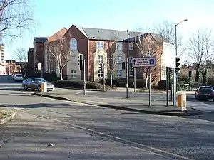Northampton St. John's Street was a railway station and the northern terminus of the Midland Railway's former Bedford to Northampton Line which served the English county town of Northampton from 1872 to 1939. Its closure came about as a cost-cutting measure implemented by the London, Midland and Scottish Railway which diverted services to the nearby Northampton Castle station. After closure the elegant station building was used as offices and the line for the storage of rolling stock; the site was cleared in 1960 to make way for a car park. The car park has now been built on and is the location of St Johns Halls of Residence for The University of Northampton.