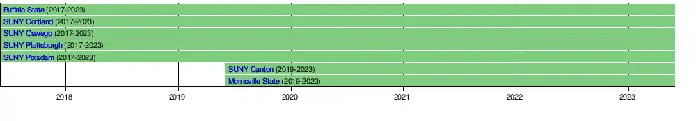 State University of New York at Cortland | Cortland, New York | Red Dragons | 1868 | Public | 7,234 | 2017 | |