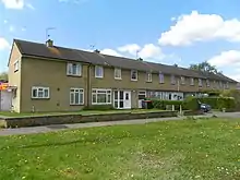 The fields of the Crabbet Park estate were interspersed with allotments,[7] and after the estate was broken up some housing was built, mostly directly off the London Road: Tushmore Lane, Cobbles Crescent and Woolborough Road had interwar ribbon development,[8][9] there was some opposite The Sun Inn at the south end of London Road before it became Crawley High Street, and some "typical 1930s housing" on Green Lane. Altogether, 229 houses existed in the designated area at the start of World War II.[10] A group of almshouses were built in 1939–40 on Northgate Road for the Worshipful Company of Dyers, a London livery company, which had moved from an older building in Islington.[11]