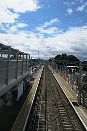 In 2017, as part of a £170m Lee Valley Rail Programme to build a 5.5 km new track between Stratford and a new Meridian Water railway station,[19] the construction of a new island platform with lifts and a new footbridge at Northumberland Park started.[20] The new platform accommodates the new third track allowing an additional two trains per hour to be operated.[21] The level crossing for cars was closed and removed. The work was completed in 2019.