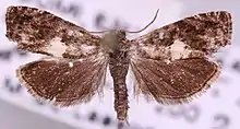 Notocelia tetragonana, the square-spot bell, is a species of moth of the family Tortricidae. It is found in China (Beijing, Jilin, Heilongjiang), Russia and Europe,[2] where it has been recorded from most of the continent, except the Iberian Peninsula, the Netherlands, Denmark and most of the Balkan Peninsula.[3] The habitat consists of woodland and scrubland.[4]