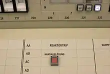 An emergency switch-off button of the Beznau Nuclear Power Plant. In 2011, the federal authorities decided to gradually phase out nuclear power in Switzerland.