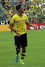 Şahin returned to Dortmund, where he played an important role in the 2009–10 season, starting 33 out of 34 matches. He ended the season with four goals and eight assists.[13] Şahin won the Bundesliga title with Dortmund in the 2010–11 season.[14] After a strong season, in which he scored six goals and had eight assists, he was voted the Bundesliga player of the season.[15]
