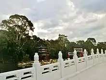 The landscaped park is complete with unique features including bridges, pavilions and waterfalls, a native wildlife park, Chinese garden, New Zealand Garden, BBQ and picnic area and large conference centre for business meetings, weddings and other varying functions, it is a popular tourist attraction located in Knox Rd, Doonside and Rooty Hill, New South Wales.[1][2][3]