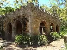 During the depression of the 1930s, considerable work was done there under the Unemployment Relief Scheme. The scenic road was constructed around the river foreshores (as part of a wider scheme never completed). At the same time, the kiosk and eye-catching castellated tower were built as an attraction for visitors. Several paths and scenic lookouts were also formed, giving excellent views over the river.[1][3]