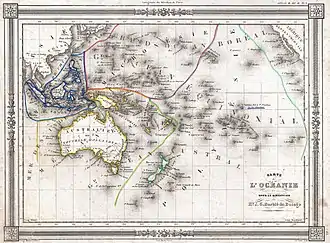 1852 map by Jean-Denis Barbié du Bocage. Includes regions of Polynesia, Micronesia, Melanesia and Malesia