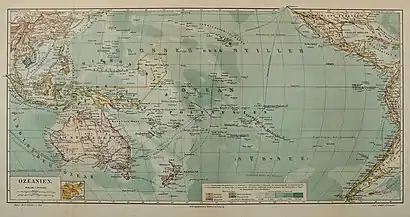 A German map of Oceania from 1884, showing the region to encompass Australia and all islands between Asia and Latin America