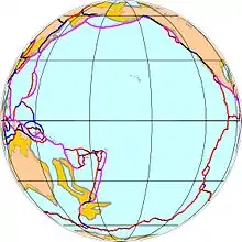 In most non-English-speaking countries Oceania is treated as a continent in the sense that it is "one of the parts of the world", and Australia is only seen as an island nation. While in other non-English-speaking countries Australia and Eurasia are thought of as continents, while Asia, Europe, and Oceania are regarded as "parts of the world".[40][41] Prior to the 1950s, before the popularization of the theory of plate tectonics, Antarctica, Australia, and Greenland were sometimes described as island continents, but none were usually taught as one of the world's continents in the English-speaking countries.[42][43][44] In his 1961 book The United States and the Southwest Pacific, American author Clinton Hartley Grattan commented that, "the use of the word Oceania to cover Australia, New Zealand, and the [Pacific] islands now has a slightly old-fashioned flavor."[45] Australia is a founding member of the Pacific Islands Forum in 1971, and at times has been interpreted as the largest Pacific island.[46][47] For example, Tony deBrum, Foreign Minister for the Marshall Islands, stated in 2014, "not only [is Australia] our big brother down south, Australia is a member of the Pacific Islands Forum and Australia is a Pacific island, a big island, but a Pacific island."[46] Some geographers group the Australian tectonic plate with others in the Pacific to form a geological continent.[48] National Geographic states that the term Oceania "establishes the Pacific Ocean as the defining characteristic of the continent."[49] Others have labelled it as the "liquid continent".[50][51][52] The Pacific Ocean itself has been labelled as a "continent of islands", and contains approximately 25,000, which is more than all the other major oceans combined.[53][54] In a 1991 article for the Submerged Resources Center, American archeologist Toni L. Carrell wrote, "the immensity of and great distances within the Pacific Basin often make it difficult to conceptualize the basin as a single earth feature." He adds that most islands in the Pacific are "close enough together to be easily clustered into archipelagos or groups. The notable exceptions, those islands more than 400 statute miles from any other, are: Clipperton Island, Easter Island, Johnston Atoll, Marcus Island, Norfolk Island, Parece Vela, and Salas and Gómez Island."[55] In his 2013 book Reptiles and Amphibians of the Pacific Islands: A Comprehensive Guide, American herpetologist George R. Zug wrote, "what is and is not part of the Pacific—particularly the western Pacific—is variously delimited", adding that "a majority viewpoint accepts the landmasses of Japan, Taiwan, the Philippines, New Guinea, and eastern Australia, which face the open waters of the Pacific, as its western edge." Islands in Indonesia's North Maluku and North Sulawesi regions are considered to border the open Pacific Ocean, with the rest of the Indonesian islands being located in marginal seas of the Pacific, or the Indian Ocean. Oceania's subregions of Australasia, Melanesia, Micronesia, and Polynesia cover two major plates; the Australian Plate (also known as the Indo-Australian Plate) and the Pacific Plate, in addition to two minor plates; the Nazca Plate and the Philippine Sea Plate.[56][57] The Australian Plate includes Australia, Fiji, New Caledonia, Papua New Guinea, Vanuatu, and parts of New Zealand.[56][57] The Pacific Plate covers the Solomon Islands and parts of New Zealand, as well as Micronesia (excluding the westernmost islands near the Philippine Sea Plate) and Polynesia (excluding Easter Island).[56][57] The Nazca Plate, which includes Easter Island, neighbours the South American Plate, and is still considered to be a separate tectonic plate, despite only containing a handful of islands.[56][57]