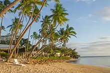 The United Nations (UN) has used its own geopolitical definition of Oceania since its foundation in 1947, which utilizes four of the five subregions from the 19th century; Australasia, Melanesia, Micronesia, and Polynesia. This definition consists of discrete political entities, and so excludes the Bonin Islands, Hawaii, Clipperton Island and the Juan Fernández Islands, along with Easter Island — which was annexed by Chile in 1888.[67] It is used in statistical reports, by the International Olympic Committee, and by many atlases.[68] The UN categorizes Oceania, and by extension the Pacific area, as one of the major continental divisions of the world, along with Africa, Asia, Europe and the Americas. Their definition includes American Samoa, Australia and their external territories, the Cook Islands, Federated States of Micronesia, French Polynesia, Fiji, Guam, Kiribati, the Marshall Islands, Nauru, New Caledonia, New Zealand, Niue, the Northern Mariana Islands, Palau, Papua New Guinea, Pitcairn Islands, Samoa, the Solomon Islands, Tokelau, Tonga, Tuvalu, Vanuatu, Wallis and Futuna, and the United States Minor Outlying Islands (Baker Island, Howland Island, Jarvis Island, Midway Atoll, Palmyra Atoll, and Wake Island).[67] The original UN definition of Oceania from 1947 included these same countries and semi-independent territories, which were mostly still colonies at that point.[69] Hawaii had not yet become a U.S. state in 1947, and as such was part of the original UN definition of Oceania. The island states of Indonesia, Japan, the Philippines, Singapore and Taiwan, all located within the bounds of the Pacific or associated marginal seas, are excluded from the UN definition. The states of Hong Kong and Malaysia, located in both mainland Asia and marginal seas of the Pacific, are also excluded, as is the nation of Brunei, which shares the island of Borneo with Indonesia and Malaysia. Further excluded are East Timor and Indonesian New Guinea/Western New Guinea, areas which are biogeographically or geologically associated with the Australian landmass.[70][71] The CIA World Factbook also categorizes Oceania as one of the major continental divisions of the world, but the name "Australia and Oceania" is used. Their definition does not include all of Australia's external territories, but is otherwise the same as the UN's definition, and is also used for statistical purposes.[72] In a 2008 article for the India Quarterly journal titled Oceania and Security: A Perspective from New Zealand, author Peter Cozens stated, "the region of Oceania is characterised by vast distances across the sea between continental land masses [...] It is difficult to be precise about the term Oceania and its exact delimitation", adding that "the principal regional political grouping is contained within the Pacific Island Forum (PIF) - the 16 states making up the Forum are: Australia, Cook Islands, Federated States of Micronesia, Fiji, Kiribati, Marshall Islands, Nauru, New Zealand, Niue, Palau, Papua New Guinea, Samoa, Solomon Islands, Tonga, Tuvalu and Vanuatu - in general terms this is the area referred to as Oceania by the United Nations and similar agencies."[73] The Pacific Islands Forum expanded during the early 2010s, and areas that were already included in the UN definition of Oceania, such as French Polynesia, gained membership.[74]