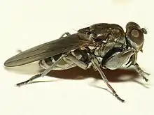 Ochthera is a genus of flies in the family of shore flies (Ephydridae). The genus is distinctive because of the swollen raptorial forelegs. The larvae are predaceous on midge larvae while the adults feed on midges and mosquitoes. The genus is found around the world with about 37 species.[3] The species Ochthera chalybescens has been shown to prey on African malaria vectors .[4][5]