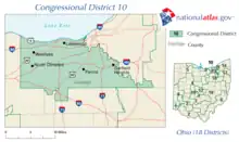 Ohio's 10th congressional district is represented by Representative Mike Turner (R). The district is based in southwestern Ohio and consists of Montgomery County, Greene County, and a portion of Clark County.