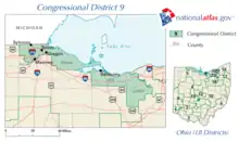 It was one of several districts challenged in a 2018 lawsuit seeking to overturn Ohio's congressional map as unconstitutional gerrymandering.[5] According to the lawsuit, the 9th "eats its way across the southern border of Lake Erie" while fragmenting Cleveland and Toledo.[6] In 2019, the Supreme Court refused to hear the case meaning that Ohio's congressional districts, including District 9, would not need to be redrawn.[7]