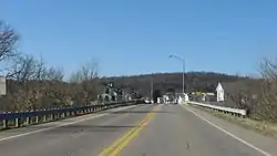 SR 266 was first designated in 1926 along the routing within southeastern Morgan County that it generally occupies to this day. There have been no significant changes to its routing since its inception.[4][5] Beginning in 2016, a portion of the road east of Stockport located close to the Muskingum River bed was slated for removal due to the constant need for repairs of landslides and rock falls. Ohio Department of Transportation (ODOT) hired Kokosing Construction Company to construct a US$15,000,000 realignment of the road, partially on a new alignment and the remaining over the township-maintained Point Lookout Road, at a higher elevation and away from the river banks.[6][7][8] The project was completed in June 2018p.[9] The 1.065-mile (1.714 km) former alignment of the highway located closer to the river has been designated by ODOT as SR 266-J, with the "J" suffix meaning the road is to be eventually abandoned by the state.[1][10]