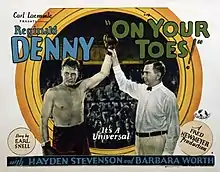 On Your Toes is a 1927 American silent comedy film directed by Fred C. Newmeyer and starring Reginald Denny, Barbara Worth and Hayden Stevenson. It was part of a trend of sports films produced at various Hollywood studios at the time.[1]