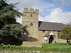 The Church of England parish church of Saint Michael & All Angels has a Norman (or possibly Saxon[4]) chancel arch but much of the present building dates from the 14th century. The nave has a queen post roof, box pews and a west gallery. Lancet windows illuminate the 12th-century chancel, which features a walled-up priest's door. The 16th-century pulpit, late perpendicular with Jacobean additions, has linenfold panelling. St. Michael's has several 17th-century monuments. St. Michael's was restored under the direction of the Arts and Crafts architect Detmar Blow (1867–1939). The church is a Grade II* listed building.[6]