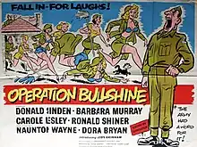 Operation Bullshine is a 1959 British colour comedy film directed by Gilbert Gunn and starring Donald Sinden, Barbara Murray and Carole Lesley.[1] The working title of the film was Girls in Arms that features as a marching song in the film.[2] Gunn had filmed Girls at Sea the previous year. The new title, based on an American euphemism for a very British word with the same meaning (bullshite), comes from the frenzied activity preparing for their brigadier's surprise inspection. The film features 1956 Olympic gold medallist Judy Grinham as a physical training instructor.