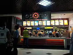 Oporto opened their first store in the United Kingdom at London's Victoria Station in January 2009 although this store closed on 18 October 2011, and opened their first restaurant in the United States in Rancho Cucamonga, California on 25 February 2011.[3] Oporto stores in the United States were all converted to Feisty Chicken Grill in 2013.[4] There are now over 100 stores in operation in Australia and New Zealand. Oporto has three types of Oporto store types; Drive Thru, Shopping Centre and Strip stores.
