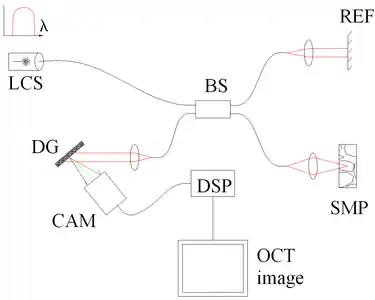 - ↑ Leitgeb R, Hitzenberger C, Fercher A (April 2003). "Performance of fourier domain vs. time domain optical coherence tomography". Optics Express. 11 (8): 889–894. Bibcode:2003OExpr..11..889L. doi:10.1364/oe.11.000889. PMID 19461802.