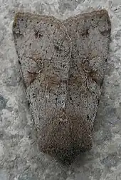 Forewing grey, varied with fuscous dusting and striation, and often more or less tinged with rufous; inner and outer lines, where visible, marked by dark dots on veins; submargmal line variable, sometimes obscure, at others pale, and preceded by a dark shade, which may be complete or broken up into three blotches; upper stigmata large, the reniform generally dark, both edged with pale; a strong thick median shade, sometimes bent at middle and entire, often marked only at costa and inner margin; hindwing pale or dark grey with dark cellspot and pale fringe. The markings are all clearer in the grey unsuffused forms: of these the chief are pallida Lampa from Sweden with the ground colour pale grey, finely striated with dark, and the two dotted cross lines;- coerulescens Tutt with the ground colour pale bluish grey; — subsetaceus Haw.which is dark slaty grey without reddish tinge, and subcarnea nov. [Warren] greyish flesh colour and praesubmarginal shades deep brown, the hindwing dull white with submarginal band and cellspot dark: of the darker forms contracta Esp. is suffused with rufous brown, leading up to fuscatus Haw. which is dark purplish liver colour; — angustus Haw. is a rarer form, mottled with chesnutbrown and fuscous; — atra Tutt and rufa Tutt are two equally rare forms, the former unicolorous sooty blackish, the latter bright reddish. These dark suffused forms are commoner in Britain, where the paler and more typical forms are rare. Still another form, apparently undescribed - olivacea nov. [Warren] has the forewing ashy grey with a strong olive flush; the median shade and the clouds before submarginal line also deeper olive; of two males one is much more varied with olive fuscous and with the lines better marked than the other; the female is wholly dark olive fuscous, with the edges of the stigmata and the submarginal line paler; in all 3 the reniform stigma is broader and less oblique than in typical incerta; the hindwing varies from pale to dark grey with an olive tinge, with dark cellspot and whitish fringe. 2 males, 1 female, together with some more or less typical specimens, from Cedre, Hautes Pyrenees.[1] Orthosia incerta is difficult to certainly distinguish from its congener Orthosia populeti (Fabricius, 1781).See Townsend et al.[2]