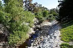 Oso Creek is an approximately 13.5-mile (21.7 km) tributary of Arroyo Trabuco in southern Orange County in the U.S. state of California.[1] Draining about 20 square miles (52 km2) in a region north of the San Joaquin Hills and south of the Santa Ana Mountains, the creek is Trabuco Creek's largest tributary, and is part of the San Juan Creek drainage basin. Beginning in the foothills of the Santa Ana Mountains near the city of Mission Viejo, the creek is dammed twice to form Upper Oso Reservoir and Lake Mission Viejo. The creek is channelized and polluted along much of its length.