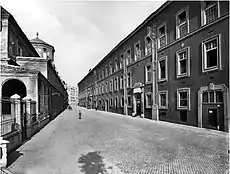 The facade of the building, 137 meters long,[5] was marked by giant order lesenes, a belt course and rectangular windows running along its entire length.[3]