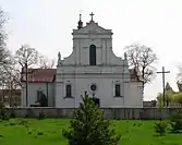 During the German invasion of Poland, which started World War II, the Wehrmacht captured the town on 8 September 1939. Afterwards it was occupied by Germany and included within the Radom District of the General Government, formed of German-occupied central Poland.[5] In 1940 the Germans carried out mass arrests of Poles as part of the AB-Aktion. Poles arrested in March were either deported to Nazi concentration camps or massacred in Góry Wysokie, while those arrested in June were imprisoned and tortured in Skarżysko-Kamienna and then murdered in a forest near Skarżysko-Kamienna.[6] Germans carried out several executions and massacres in the town. On 30 September 1942, 29 Poles, including merchants, teachers and local officials, were hanged at the Market Square.[7] In 1944, the Germans poured corrosive substances into their mass grave in attempt to cover up the crime.[7] Most of the town's Jewish community of app. 11,000 was murdered in the Holocaust in 1943–1944.