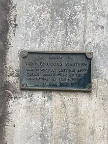 The Otira viaduct is to the south of Otira, between Otira and the Arthur's Pass summit. Completed in 1999 by McConnell Smith Pty Ltd, the 440 metres (1,440 ft) four-span viaduct carries State Highway 73 over a stretch of unstable land, replacing a narrow, winding, dangerous section of road that was prone to avalanches, slips and closures.[16] One person, Tony Western, 25, was killed during construction in July 1998 when a chain failed and a pump fell on him. [17] A plaque was installed in his memory in the base of the westernmost pier.