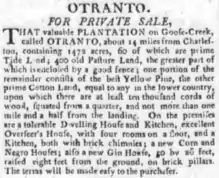 Otranto Plantation is a historic plantation house located in Hanahan, Berkeley County, South Carolina. It was built before 1778, and is a 1 1/2-half story, rectangular gable-roofed stuccoed brick dwelling. It has an attached colonnaded piazza, or porch, on three sides. Also on the property is a contributing small frame servants’ house.[2][3]