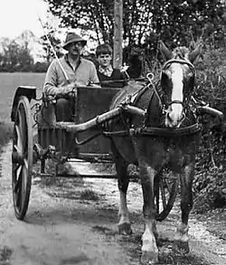Hargreaves with his stepson Simon Baddeley in a trap drawn by Simon's pony, Pewter.