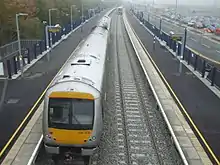 Oxford Parkway railway station is a railway station at Water Eaton, Oxfordshire, on the Oxford–Bicester line. Full regular weekday service began on Monday 26 October 2015,[2] although the first passengers travelled the previous day on a Sunday timetable.[3]