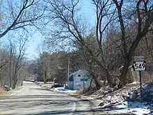 Pennsylvania Route 549 (PA 549, designated by the Pennsylvania Department of Transportation as SR 549) is a 19.15-mile-long (30.82 km) state highway located in Tioga and Bradford counties in Pennsylvania. The southern terminus is at U.S. Route 6 (US 6) in Richmond Township near Mansfield. The northern terminus is at PA 328 in Wells Township. PA 549 was first designated in 1928 onto the current alignment from Richmond Township and US 6 to an intersection with then-PA 826 in Wells Township. This was changed in 1941 to extend to the New York state line nearby, but was extended and truncated twice between 1946 and 1961. In 1961, it was truncated to its current alignment.