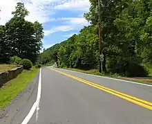 Pennsylvania Route 92 (PA 92) is a 66-mile-long (106 km) north–south state highway located in northeast Pennsylvania. The southern terminus of the route is at U.S. Route 11 (US 11) in West Pittston. The northern terminus is at the New York-Pennsylvania border in Oakland Township, where the road continues northward as New York State Route 79 (NY 79).