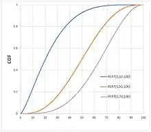 Cumulative distribution function ![]() Example cumulative distribution curves for the PERT probability distribution | |||