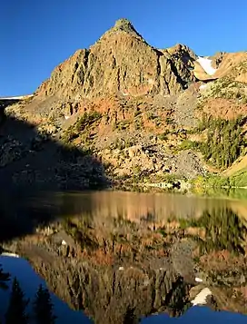 Page Peaks is a 10,929-foot-elevation (3,331 meter) mountain summit located in the Sierra Nevada mountain range, in Mono County of northern California, United States.[1] The mountain is set in the Hoover Wilderness on land managed by Humboldt–Toiyabe National Forest. The summit is situated one mile outside the boundary of Yosemite National Park, and less than one mile east of line parent Camiaca Peak. Topographic relief is significant as the east aspect rises 1,400 feet (430 meters) above East Lake in one-quarter mile. This landform's toponym, which commemorates a miner and prospector named Page,[5] has been officially adopted by the United States Board on Geographic Names.[1]