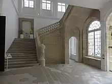 In the main corps de logis two large staircases (l'escalier d'honneur) on the northern and southern side led to the first floor. The first floor consisted of rooms and apartments of court members, such as Duke Franciszek Maksymilian Ossoliński and Duchess Ossoliński, the grand escuyer, grand marshall, ladies-in-waiting, grand almoner, office of the chancellor, chamberlains, etc.[6]