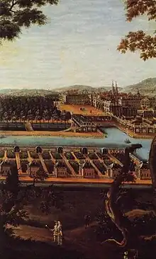 Around 1739-1740 Stanislaus I remodeled the grounds next to the main garden, which was enclosed by both arms of the Vezouze river into an island. The architect Héré completed a series of six cottages called chartreuses. Each one of these cottages were surrounded by a gardens, kitchen gardens and hedges. They grew their own fruits and vegetables. The cottages were occupied by the mistress and other court favourites,[18] who grew, harvested and offered their goods to Stanislaus.[19][20]