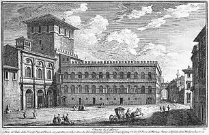 The palace in its original location in a print by Giuseppe Vasi (1756)