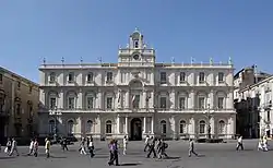 37°30′13″N 15°05′12″E / 37.50363°N 15.08680°E The Palazzo dell'Università or Palazzo Centrale dell'Università di Catania is a monumental palace located in Piazza Universitaria, in the center of the city of Catania, region of Sicily, southern Italy. Since its construction, it has housed the main offices of the University of Catania, and stands across the piazza from the Palazzo San Giuliano, also housing offices of the university. It presently houses the offices of the rector, university offices, the "Giambattista Caruso" Regional Library,[1] and a small museum of geology and archeology.