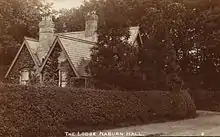 The manor house of the Palmes family – Naburn Hall – is first recorded in 1345. It had eight hearths in 1672. A drawing of circa 1720 shows it as a two-storey house, three bays long, with attic windows in tall pointed gables. The house was remodelled in 1735 by Brian Palmes (1696–1737), who was married to Anne, daughter of Robert Scarisbrick of Scarisbrick Hall. The hall was again altered in 1818 by George Palmes (1776–1851). In 1870, it was restored and enlarged to the designs of William Atkinson, though the 18th century interior and central block remained unchanged. The main three-storey square block of rendered brick and stone dressings has a concealed slate roof. In the 19th century, a two-storey wing was attached. Attached to the rear of the hall is the derelict yellow brick and tile Chapel of St. Nicholas, originally built in the 16th century by Nicholas Palmes (died 1551) of Naburn, so his family could continue to practice Catholicism. The chapel was rebuilt in 1870. The Coach house and Stables were built in the late 18th century with a Pedimented Clock tower and domed bell-turret. A one and a half-storey Gate Lodge was built on the main road in the early 19th century, with a central stack, slated roof and veranda.[8]