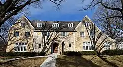 Located in the Manville Heights neighborhood, Parish Apartments was built as a fraternity house for Sigma Pi in 1929. The design for the three-story stone Tudor Revival structure is attributed to Madison, Wisconsin architect Myron Edwards Pugh. It was built at the height of fraternity house construction at the University of Iowa.[2]