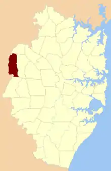 The parish is on the Nepean River between Penrith, New South Wales and Richmond, New South Wales in the foothills of the Great Dividing Range.