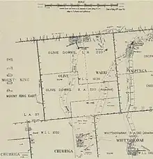 The parish is named for Olive Downs Station, a cattle run of 92,000 acres established between 1884 and 1886. The first recorded owners were Charles Murray and William Sanderson in 1889 but the property changed hands a number of times and grew in area to become 512,000 acres by 1912. In 1924 an adjoining property in Queensland was added to the run.[4]