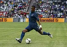 Patrice Latyr Evra (French pronunciation: [patʁis latiʁ evʁa]; born 15 May 1981) is a French former professional footballer. Originally a forward, he primarily played as a left-back.[4] Evra served as captain for both Manchester United and the France national team.[5][6] His manager Sir Alex Ferguson praised Evra for his leadership, also describing him as one of the best left-backs in Europe.[7]