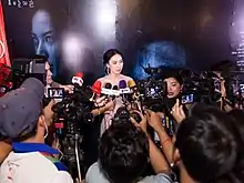 On 5 April 2021, warrants for her arrest were issued under section 505 (a) of the penal code by the State Administration Council for speaking out against the military coup. Along with several other celebrities, she was charged with calling for participation in the Civil Disobedience Movement (CDM) and damaging the state's ability to govern, with supporting the Committee Representing Pyidaungsu Hluttaw, and with generally inciting the people to disturb the peace and stability of the nation.[15][16]