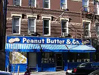 Founder Lee Zalben graduated from Vassar College in 1995[7] and after a short time in the advertising and publishing industries he opened the Manhattan store on December 21, 1998. Zalben has stated that he began working with peanut butter due to a childhood love of it.[8][9] From 1998 to 2016, the company operated a sandwich shop in Greenwich Village, New York City.[10][3] Its menu primarily consisted of peanut butter sandwiches and other items made with peanut butter,[11][12] with gourmet peanut butter sandwiches sold for $5.[4] Each sandwich was available in a dozen varieties, with ingredients such as bacon, honey, banana,[13] spicy peanut butter, and grilled chicken.[14] According to Eater, it was a "single menu restaurant pioneer" for its focus on peanut butter sandwiches, and "paved the way for cutesy comfort food specialists like Rice to Riches, Insomnia Cookies, Meltshop, and Puddin' By Clio (RIP)."[15]