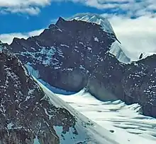 Pease Peak is a 7,750 ft (2,360 m) mountain summit located in the Alaska Range, in Denali National Park and Preserve, in the U.S. state of Alaska. It is situated 1,500 feet above the Tokositna Glacier to its west, and Ruth Glacier to the east, along the southern margin of the Don Sheldon Amphitheater, 11 mi (18 km) southeast of Denali, 2.84 mi (5 km) southeast of The Rooster Comb, and 0.45 mi (1 km) west of Mount Dickey, which is the nearest higher peak.[1] Dickey forms the eastern buttress of Pittock Pass, whereas Pease forms the western buttress. Although overlooked as a climbing destination, the peak is often seen due to its proximity to the air taxi landing area and the Sheldon Chalet immediately north of the peak. Pease Peak, and its variant name Mount Pease, is based on a mountain climber's name that was published in the late 1940s.[3][4]