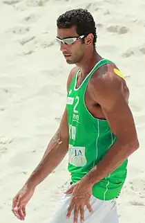 In the first four events of the year, Solberg began playing with Cunha, best finish was a fourth place in Prague.[7] With his new partner Rhooney Ferramenta reached fifth place in the fifth event of the season,[7] including the World Championships in Rome.[9] In Stavanger, the two Brazilians ranked in the 25th place, they were ninth in Gstaad.[7] Solberg was then removed because of a doping suspicion.[10] He was lift provisionally the suspension in mid-August because of a delay in the testing that was not the fault of the athlete.[11] In October, the International Volleyball Federation closed the doping charges after concluding that "there is no evidence of an anti-doping rule violation".[12] In Agadir, Morocco, he won the bronze medal with Ferramenta in the final event of the season.[13]